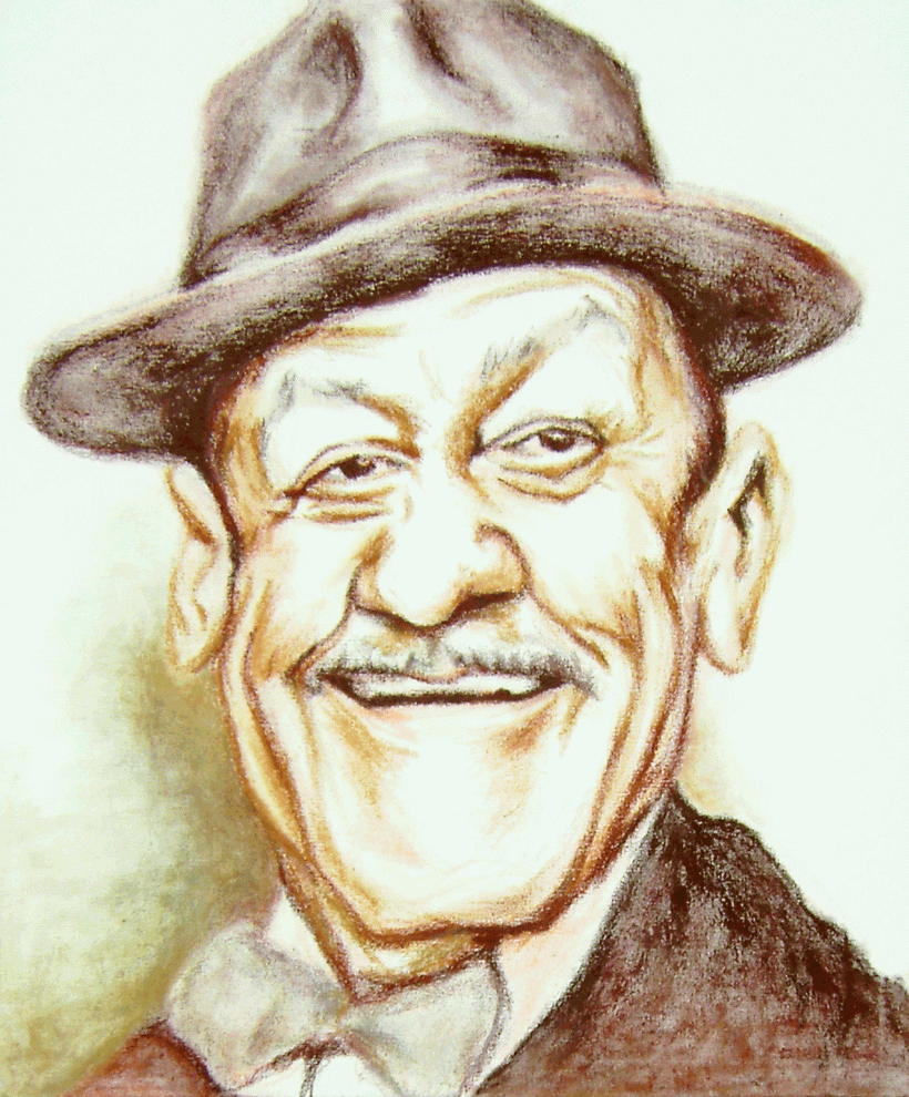 Adoniran, que completaria cem anos em agosto, recebe uma série de homenagens pelo país. Em Blumenau, dia 15, sábado, o grupo Demônios da Garoa fará um show em que se poderá desfrutar dos grandes sucessos do compositor. Será no Teatro Carlos Gomes, e lá estarão alguns trabalhos meus. Entre eles, esse retrato do Adoniran, de 50 x 60 cm, feito em giz pastel sobre tela.