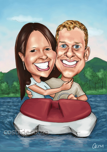 Caricatura de namorados, modalidade “caricatura completa com acabamento digital”. Encomenda para Curitiba feita no início deste mês.
