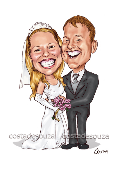Caricatura sob encomenda para cliente de Blumenau. Modalidade “corpo inteiro, colorida digital, sem elementos adicionais”.