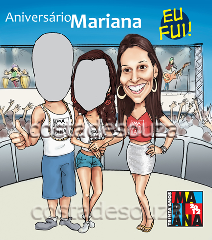 Caricatura para banner de interação com convidados, para festa com tema Micareta. Para cliente de Porto Velho (RO). Faço toda a arte do banner, com os espaços vazados para os rostos demarcados em cinza para serem cortados na impressão.