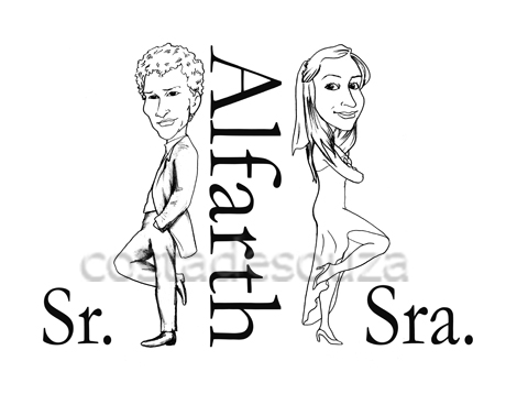 Caricatura com referência à arte de divulgação do filme “Sr. & Sra. Smith”. Para casal de Blumenau que celebrou a união em março.