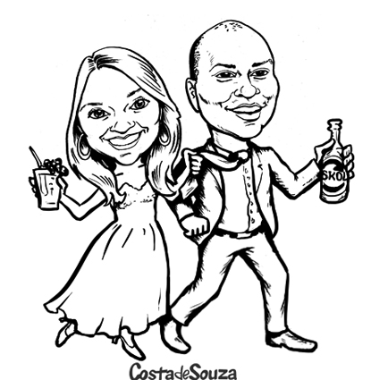 Caricatura para gravação em objetos, pra personalizar lembranças de casamento. Modalidade Corpo Inteiro, em preto-e-branco, sem adicional.