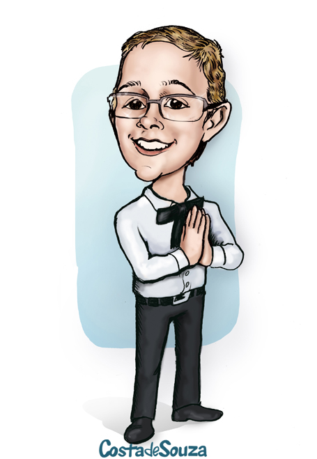Caricatura para convite e identidade visual de festa de Primeira Eucaristia. Colorida, sem adicionais.