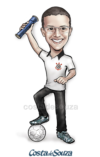 Caricatura para formatura em Administração. Formando que adora jogar futebol e torce pelo Corinthians.