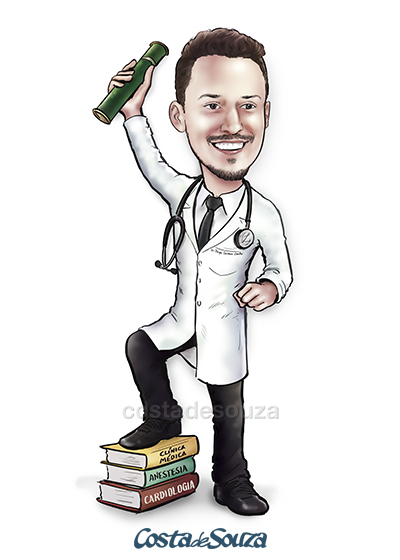 A caricatura para formatura pode ser utilizada como quadro, banner, totem em tamanho real, display de mesa e em produtos para os convidados como copos, taças e chinelos. É também uma forma criativa de ilustrar a conquista nos seus posts nas redes sociais.