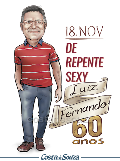 Caricatura para aniversário de 60 anos, para convite e decoração da festa.