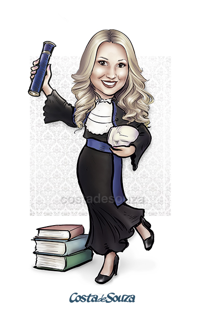 A caricatura para formatura pode ser aplicada em banner, totem, display de mesa, quadro na recepção e produtos personalizados da festa como copos, canecas e chinelos. Também pode ser utilizada como post nos perfis pessoais no Facebook e no Instagram, para comemorar a conquista.