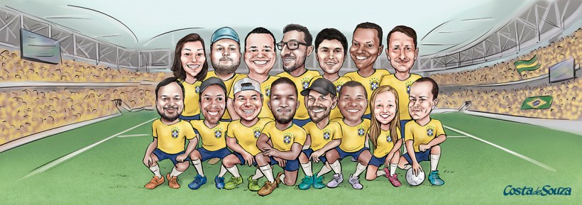 Caricatura de equipe na torcida pelo Brasil