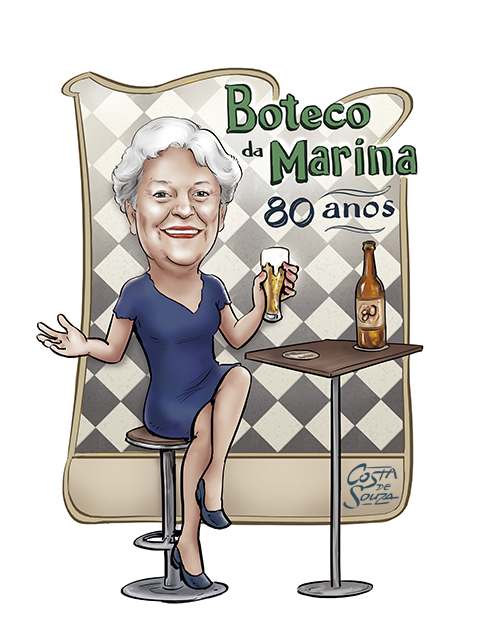 Caricatura para festa de aniversário de 80 anos com tema Boteco.