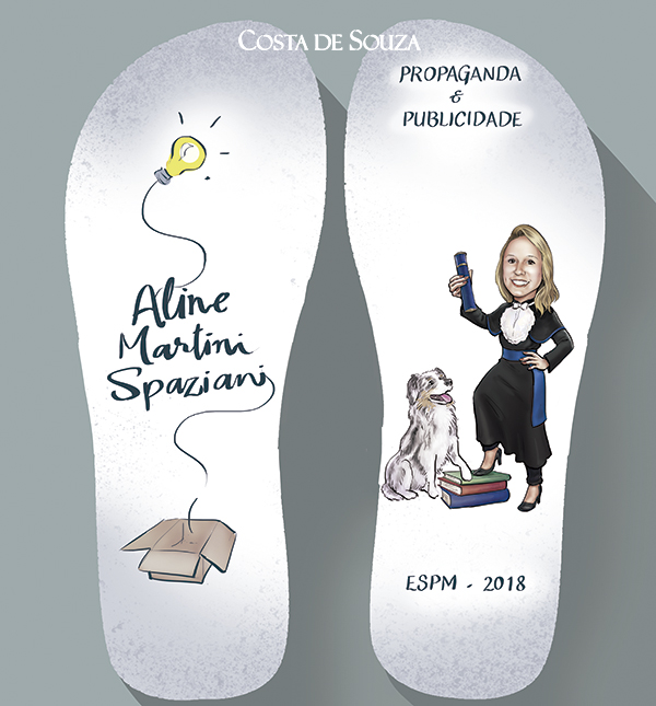 O lettering do nome da formanda foi reelaborado para ficar em harmonia com a nova ilustração, que remete à ideia de “pensar fora da caixa”.