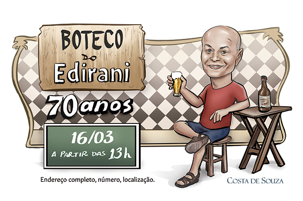 Caricatura para festa de aniversário de 70 anos com tema Boteco.