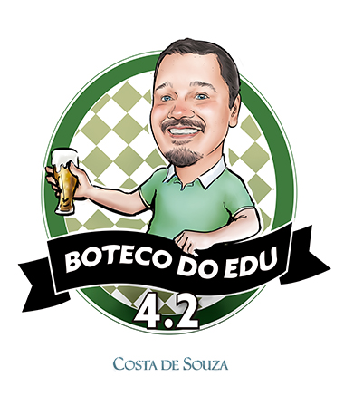Caricatura para festa de aniversário com tema Boteco. Encomenda na opção Colorida, Completa.