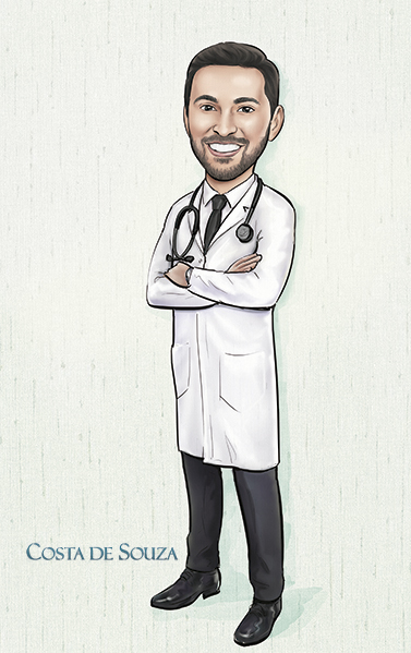 Caricatura para formatura de Medicina. Encomenda na opção Colorida, sem adicionais.