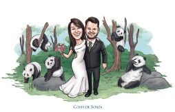 caricatura casamento noivos panda wedding