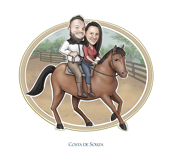 caricatura namorados quadro fazenda cavalo