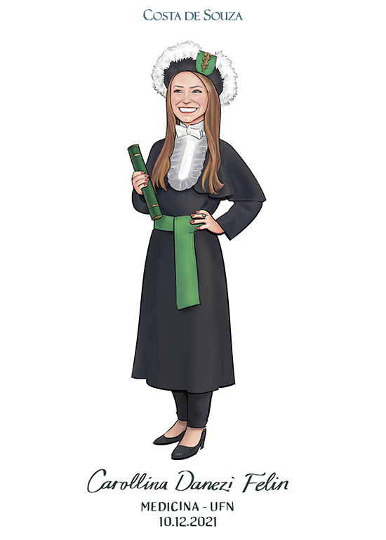 Caricatura para formatura de Medicina. Encomenda na opção Colorida, com 1 adicional (com escrita de nome e nome do curso).