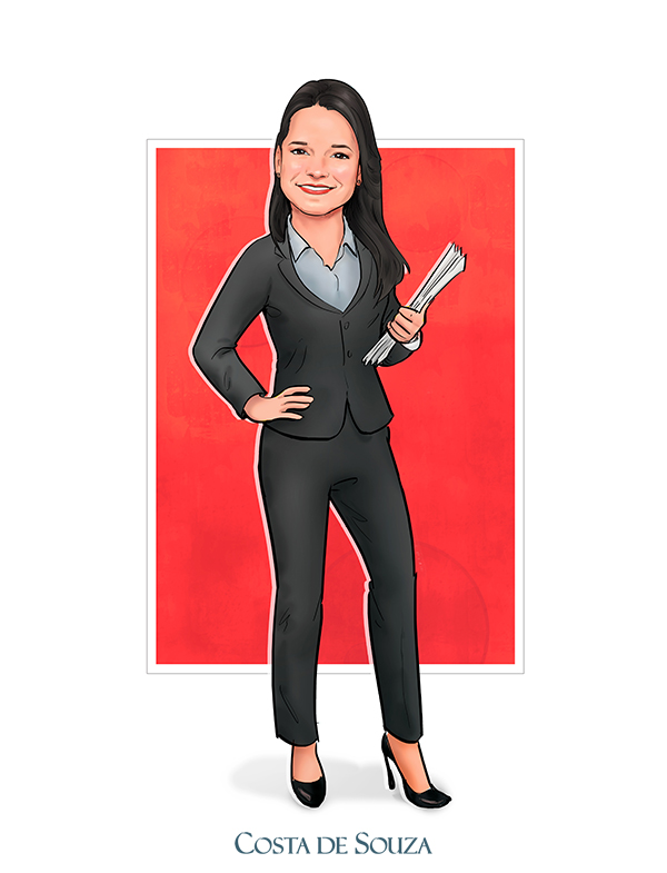 Caricatura para marketing e identidade visual, para ser utilizada junto do logotipo de uma imobiliária, retratando a proprietária da empresa.