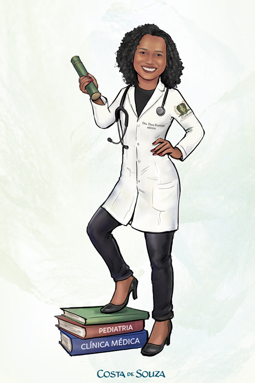 Caricatura para formatura de Medicina. Encomenda na opção Colorida, Standard.