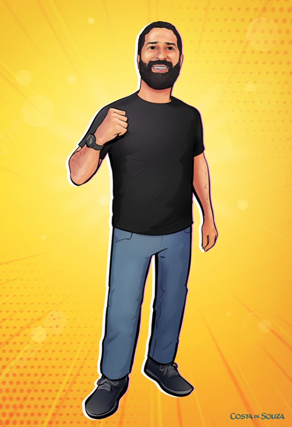 Caricatura para uso como identidade visual, junto da logomarca, para um professor e palestrante. Encomenda na opção Colorida, Standard.