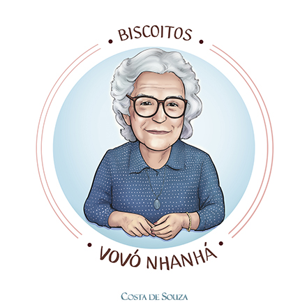 Desenvolvimento de logotipo com caricatura para marca de biscoitos. A ilustração representa a avó do atual proprietário da empresa.