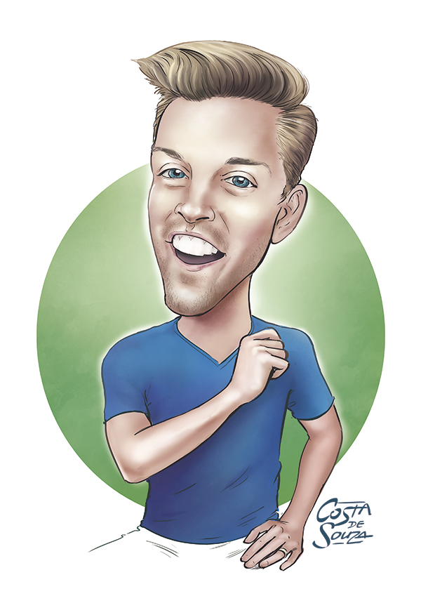 Hoje, em Blumenau, ele deu uma palestra muito inspiradora, e com o humor que já é característico dos seus vídeos. Ao final do evento, tive a oportunidade de entregar pra ele uma versão impressa dessa caricatura. Foi um momento muito divertido, ainda mais pela coincidência de ele estar usando a mesma camiseta que usei como referência para a caricatura.