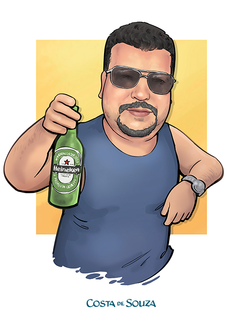 Caricatura por encomenda para identidade visual de bloco de carnaval. O homenageado era um músico muito conhecido da comunidade, que infelizmente faleceu há alguns anos.