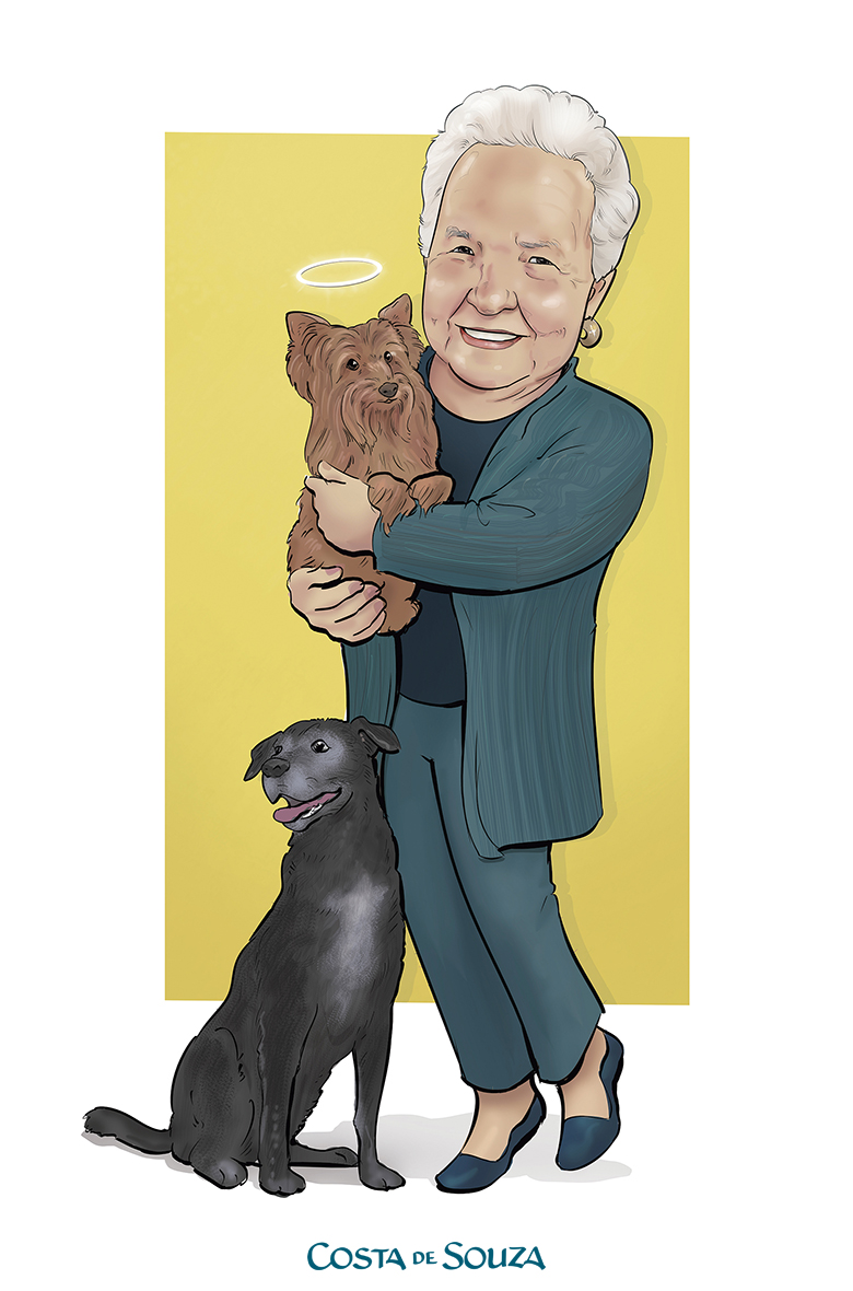 Caricatura de profissão para massoterapeuta e esteticista, para um quadro colocado na parede da clínica. Encomenda na opção Colorida, sem adicionais (Standard).