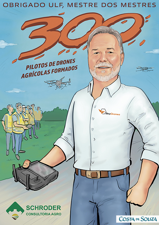 Caricatura por encomenda para presente como quadro, para homenagear um homem que se dedicou à agricultura. A família pediu que o cenário mostrasse um canavial.