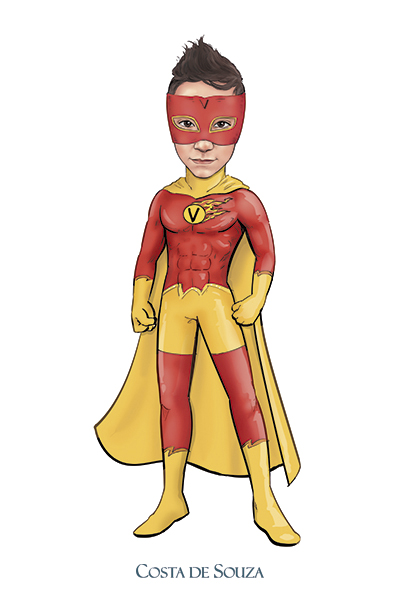 Apresento a vocês o super herói Velocit, criação de um cliente que pediu sua caricatura e também o logotipo da equipe do qual o herói faz parte, a Liga Calção.