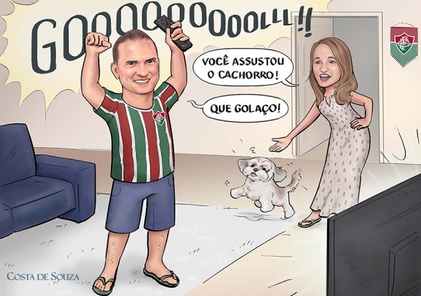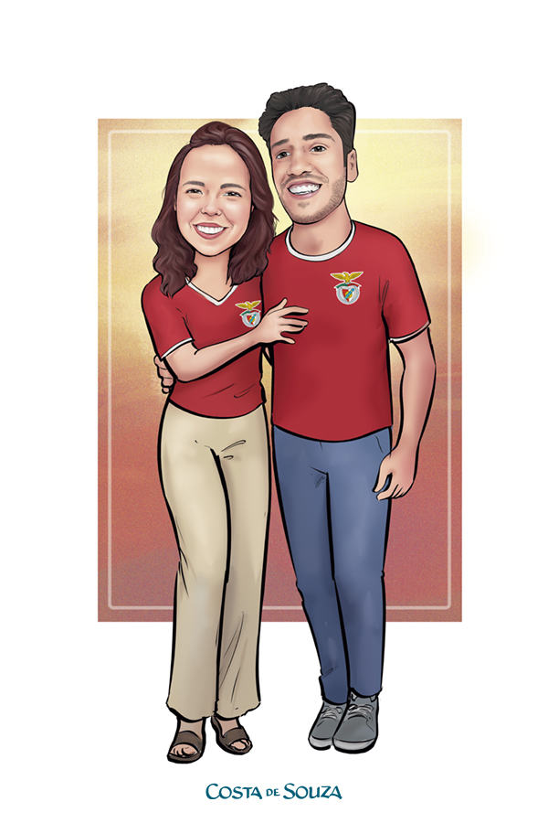 Couple caricature for a gift as a picture at the Dia dos Namorados, the Brazilian version of the Valentines Day. Commission. Colorful, “Complete Scene” option.