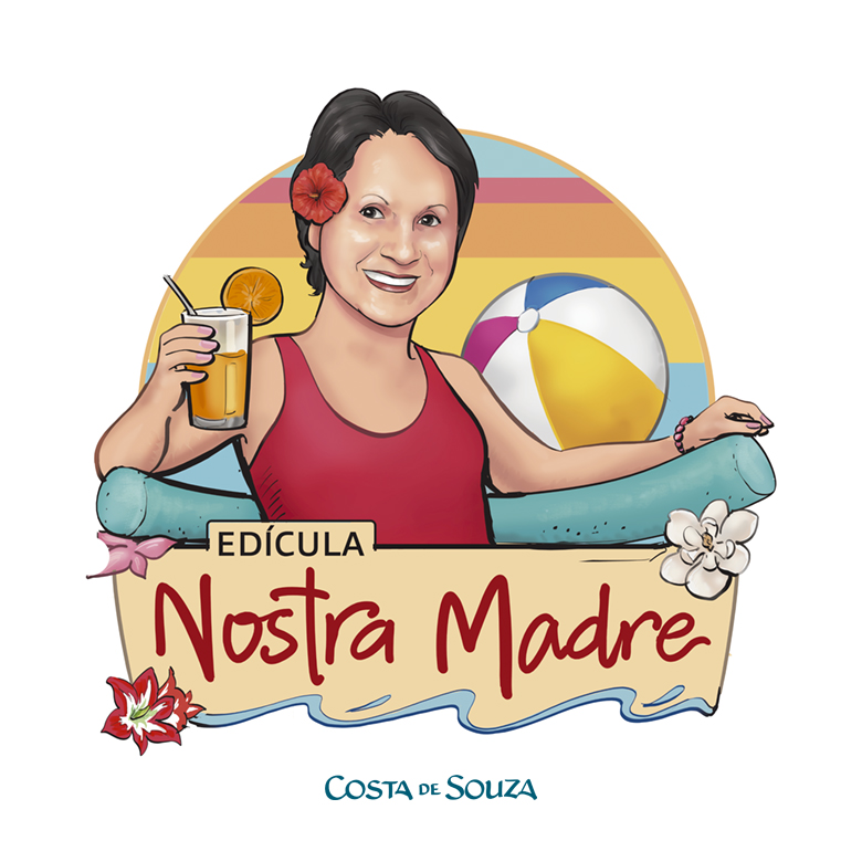 Caricature and logo design for an edicule, a tiny house with a pool for parties and events focused on water play activities in Piracaciba, Brazil.