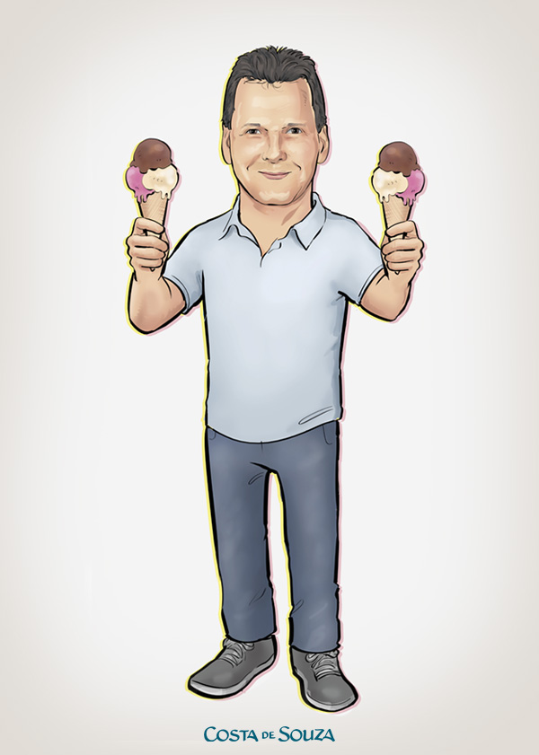 Caricatura e design de logomarca (logotipo) para sorveteria. O cliente também pediu uma versão de corpo inteiro pra acrescentar na identidade visual, em diversos posts nas redes sociais.