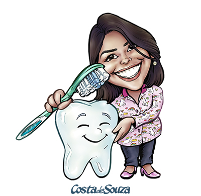 Caricatura para marketing da doutora Leticia Diniz Vieira, dentista. A personagem foi desenvolvida para utilização em todas as peças de divulgação do trabalho dela, como cartazes, cartões de visita, capa de página virtual, e demais posts nas redes sociais.