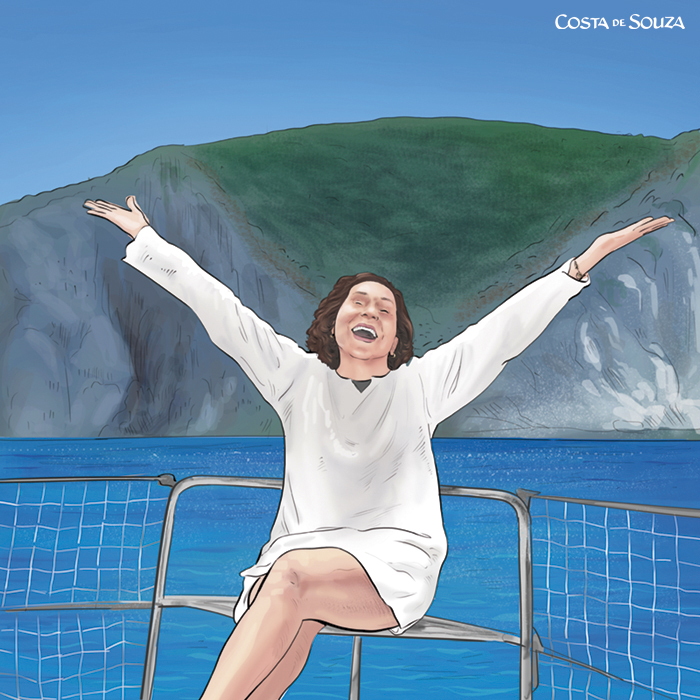 Pra fazer esse desenho, assisti algumas entrevistas dela e pude conhecer um pouco mais dessa artista, que tem um excelente senso de humor e muito entusiasmo pela cultura brasileira.