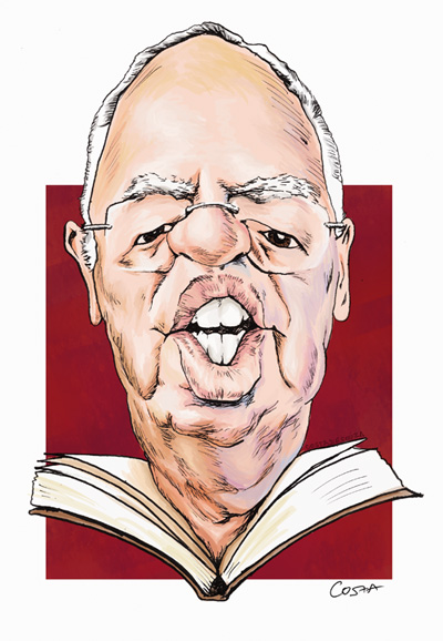 A caricatura acima foi feita em nanquim com bico de pena e Photoshop. Abaixo vai um detalhe da imagem com maior resolução pra você ver os traços (clique para ampliar).