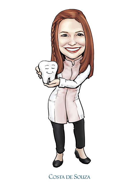 Caricatura para marketing da doutora Leticia Diniz Vieira, dentista. A personagem foi desenvolvida para utilização em todas as peças de divulgação do trabalho dela, como cartazes, cartões de visita, capa de página virtual, e demais posts nas redes sociais.