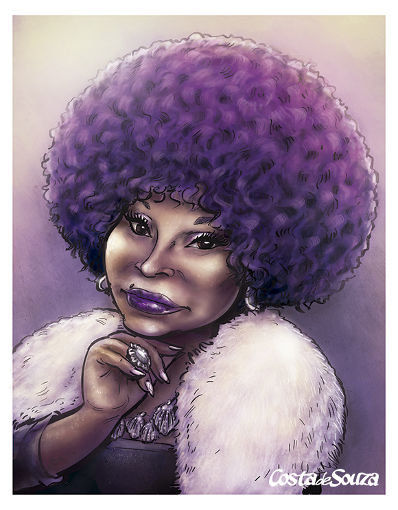 Caricatura de Elza Soares. Cantora que admiro por toda a sua trajetória, sua expressividade, sua força como ícone social, e o grandioso espetáculo que proporciona com sua voz inigualável.