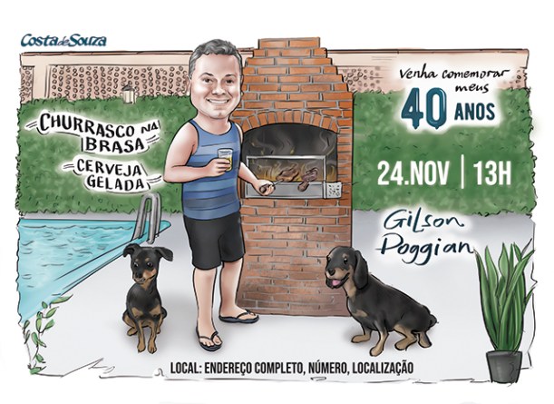 Caricatura para convite de aniversário de 40 anos com tema Churrasco.