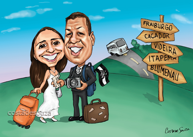 Esse é um caminho entre o retrato realista e a caricatura, sempre destacando que a caricatura não precisa ser extremamente cômica nem ter intenção de fazer rir a partir de detalhes dos rostos das pessoas desenhadas.