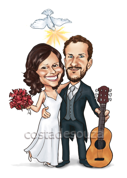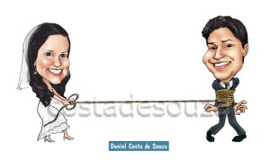 Caricatura utilizada no convite de casamento para incluir texto entre os desenhos dos dois. Para cliente de Blumenau.