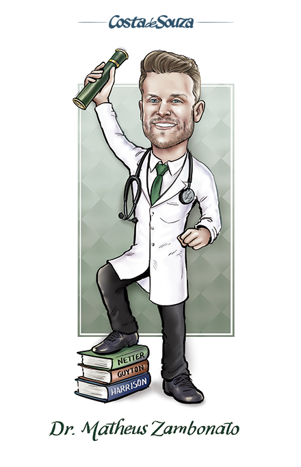 Caricatura para formatura em Propaganda e Publicidade. A cliente pediu para incluir seu cachorro no desenho, e também a escrita do nome da formanda, curso e data.