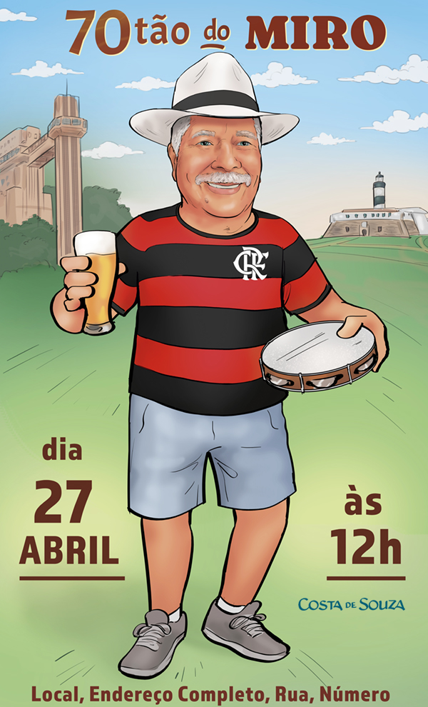 Caricature for a Medical School graduation. The graduate with the doctor coat customized with the badge of her football club, some books and the LGBTQ flag. Her cat was also there to celebrate this moment, for sure.