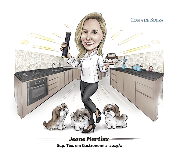 Caricatura para formatura de Gastronomia. Encomenda na opção Colorida, completa.