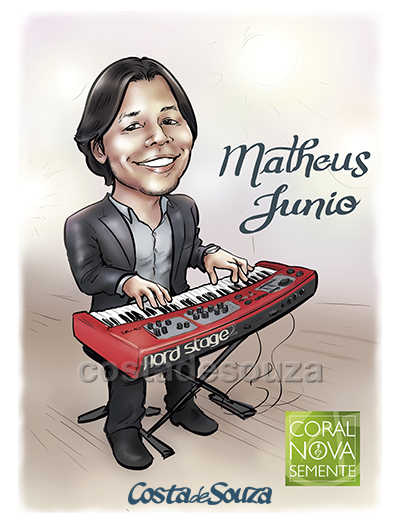 Caricatura para presente entregue como quadro. Os membros do coral homenagearam o maestro encomendando esta caricatura.