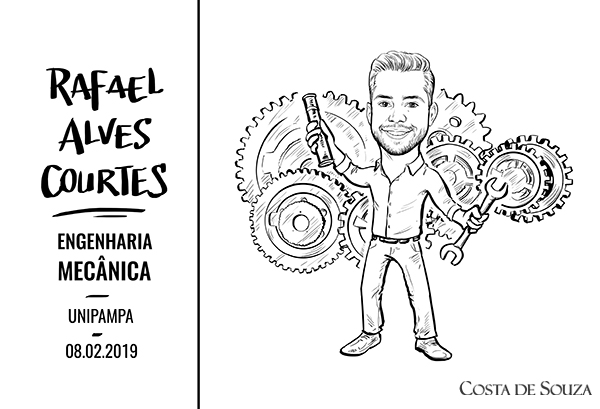 Caricatura para formatura em Engenharia Mecânica. Encomenda na opção Em Preto-e-Branco, completa.