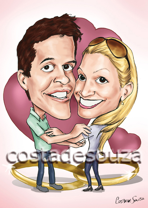 maio 29, 2011 por Costa de Souza Deixe um comentário Noivos Caricatura sob encomenda para festejar a união deste casal de Blumenau – SC. Caricatura completa, com direito a fundo personalizado conforme pedido do cliente. Colorida com acabamento digital.
