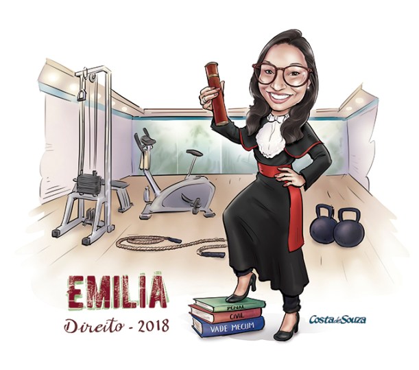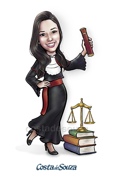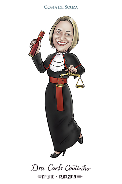 Caricatura para formatura em Direito. Encomenda na opção Colorida, com 1 adicional.