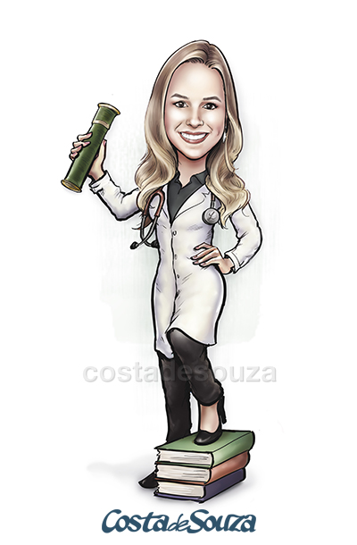 Caricatura para formatura de Medicina. Encomenda na opção Colorida, sem adicionais.