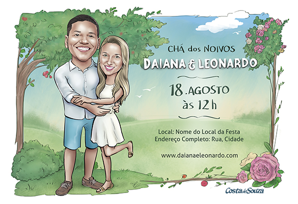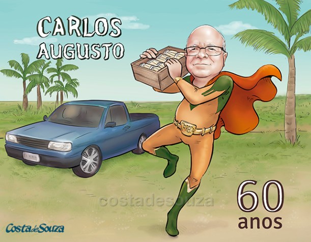 A caricatura para aniversário pode ser utilizada como convite e também como banner, quadro e diversos itens personalizados da festa.