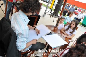 Caricaturas ao vivo coloridas em ação promocional em Brusque – SC. Novembro de 2011. São produzidas cerca de 10 caricaturas por hora nesta técnica (coloridas e em papel A3). Agradeço à equipe da Gui-Gui Eventos pela oportunidade e pelas fotos enviadas.